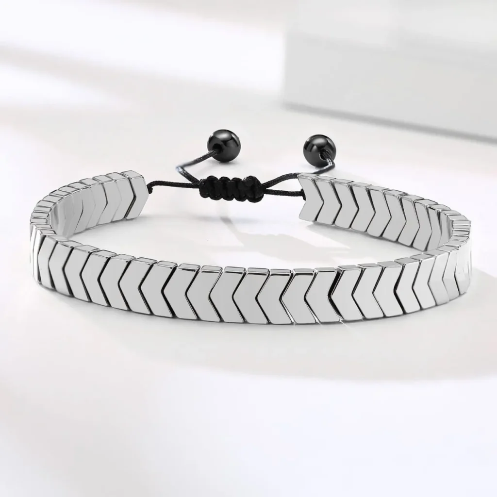 Hematite is known for its durability and polished finish, giving the bracelet a premium look.